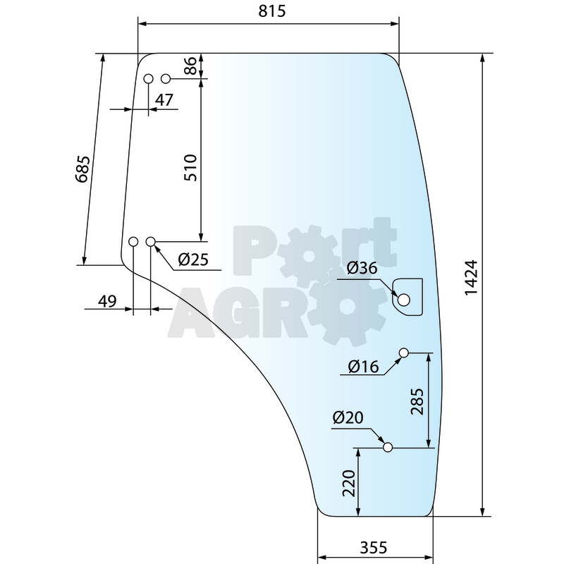 Priekinis stiklas, apatinis, dešinė (skaidrus)